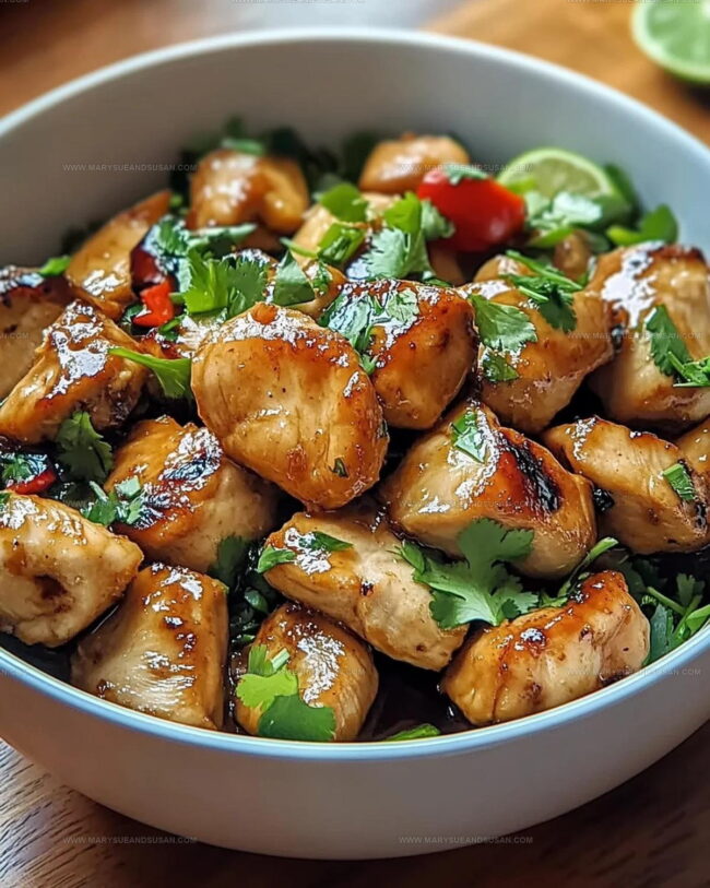 Once the chicken is cooked through (internal temperature should reach 165°F), remove from heat. Sprinkle with fresh chopped cilantro and sliced green onions. Serve with lime wedges on the side for a bright, zesty finish.