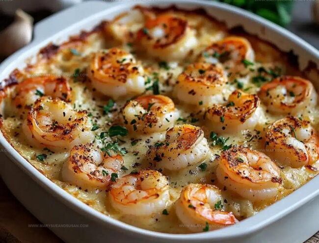 Creamy Garlic Shrimp Gratin Recipe With Bubbling Cheese