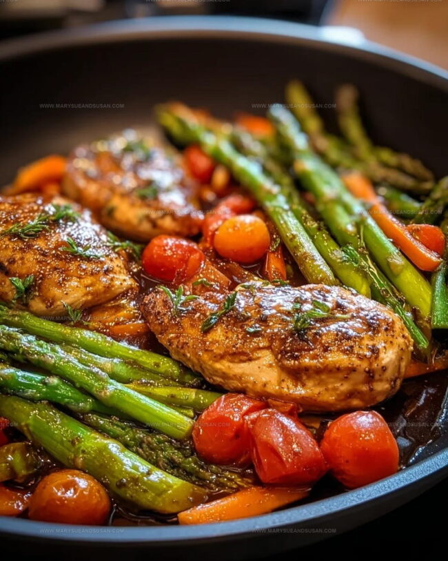 Balsamic Chicken and Asparagus brings together tender chicken and crisp asparagus in a single skillet with minimal cleanup. Drizzled with a tangy balsamic glaze, your dinner comes together effortlessly for a quick and satisfying meal that delivers maximum flavor with minimum fuss.