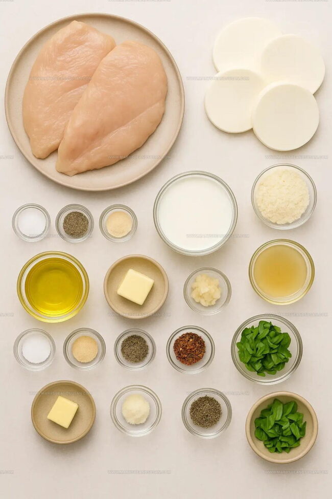 Mozzarella chicken in basil cream sauce brings restaurant elegance right to your dinner table with minimal fuss.