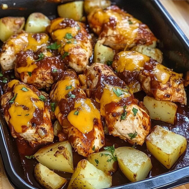 Sizzling BBQ Chicken and Potatoes bring pure comfort straight from your kitchen to the dinner table. Crispy potato wedges and juicy chicken drowned in tangy barbecue sauce make this meal a total crowd-pleaser for your hungry family.