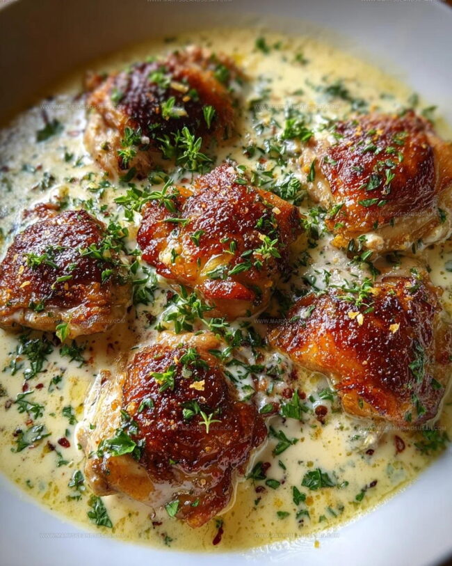This recipe stands out because of the creamy garlic sauce that adds rich, tangy flavor directly to the perfectly seared chicken thighs. The combination of fresh herbs, lemon, and cream creates a restaurant-quality dish right in your kitchen.