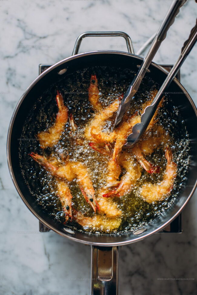 - Fry the shrimp for 2-3 minutes, turning once, until they transform into a rich, golden-brown color with a crispy exterior.