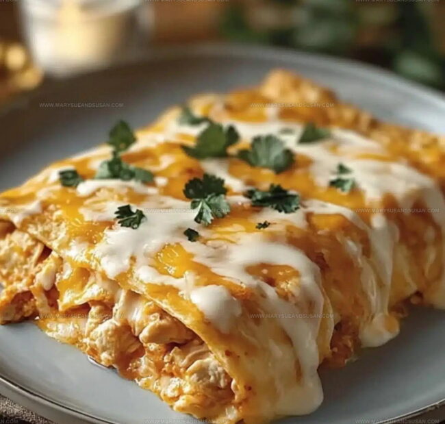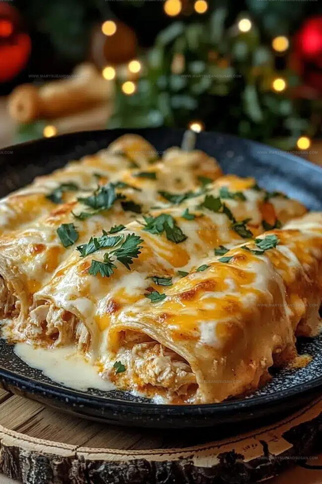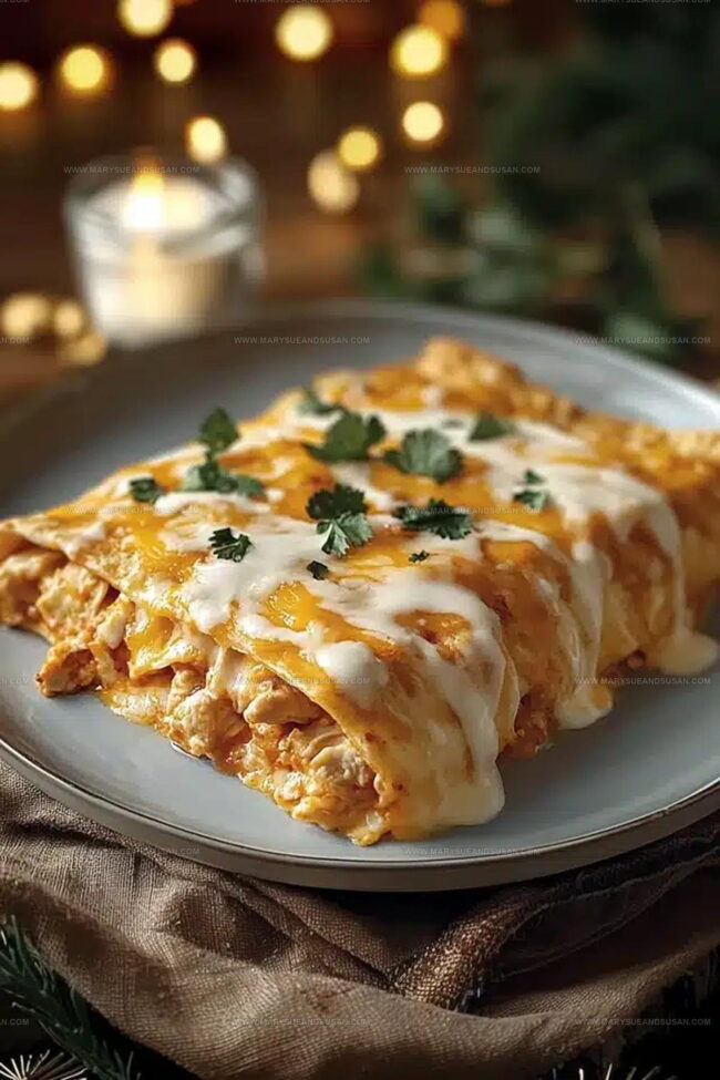 The combination of tender chicken wrapped in soft tortillas and smothered in flavorful sauce creates comfort food that satisfies everyone at the table.