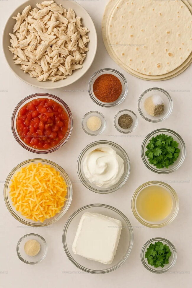 - Blend 2 cups shredded chicken with 4 ounces softened cream cheese, ½ cup diced tomatoes with green chilies, and 2 tablespoons taco seasoning in a large mixing bowl until thoroughly combined and creamy.