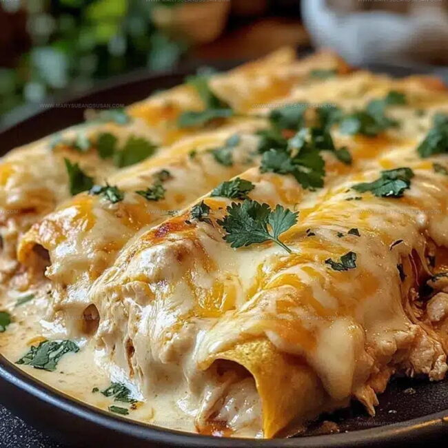 Cheesy chicken enchiladas with creamy sauce pack tender chicken into rolled tortillas covered in rich, cheesy goodness. They’re comforting, filling, and always popular at the dinner table.