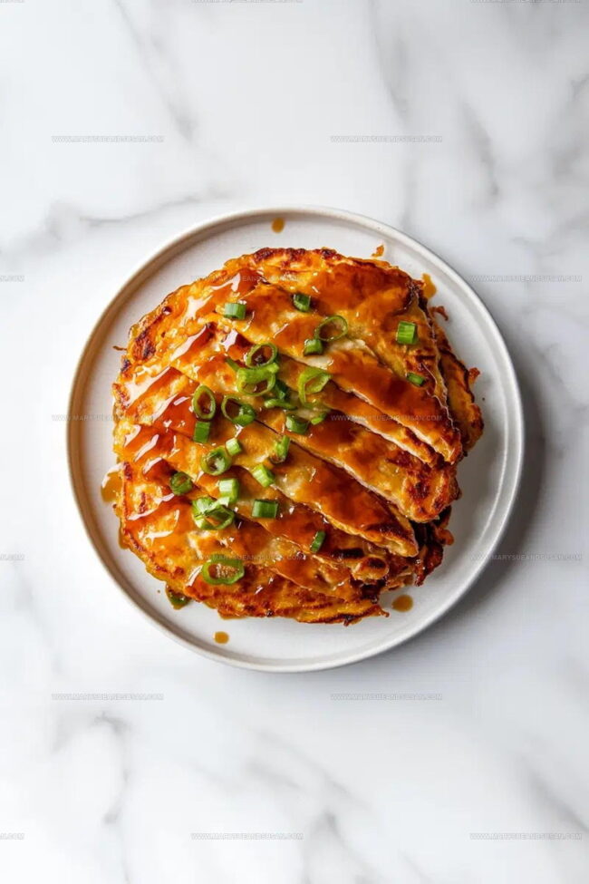 - Drizzle warm sauce over pancakes and garnish with additional sliced green onions before serving immediately.