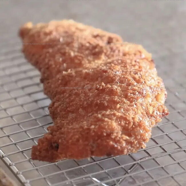 Aim for about 1/2 inch thick. This ensures even cooking and helps the chicken stay juicy while getting a perfect crispy exterior.