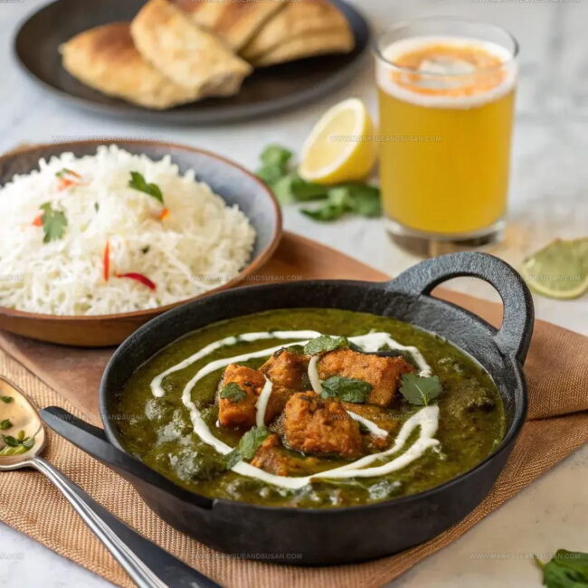 Spice enthusiasts and comfort food lovers unite around this classic Indian favorite that combines tender meat with lush green spinach sauce.