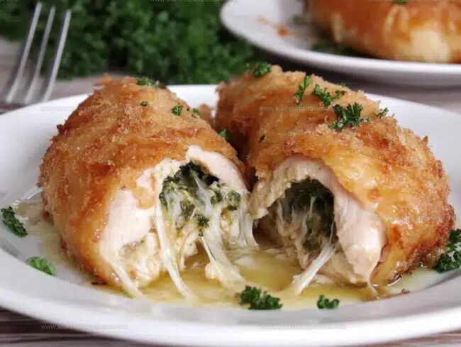 - Seal chicken rolls tightly and refrigerate before breading to help maintain their shape and prevent butter from escaping during frying.