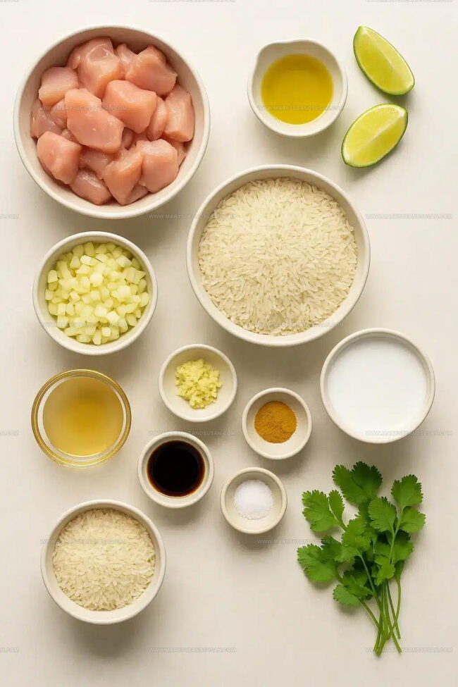 Main Proteins:Fat and Oil:Aromatics:Rice and Liquid Base:Seasonings:Garnish:Cookware Essentials For This Coconut Chicken And Rice
