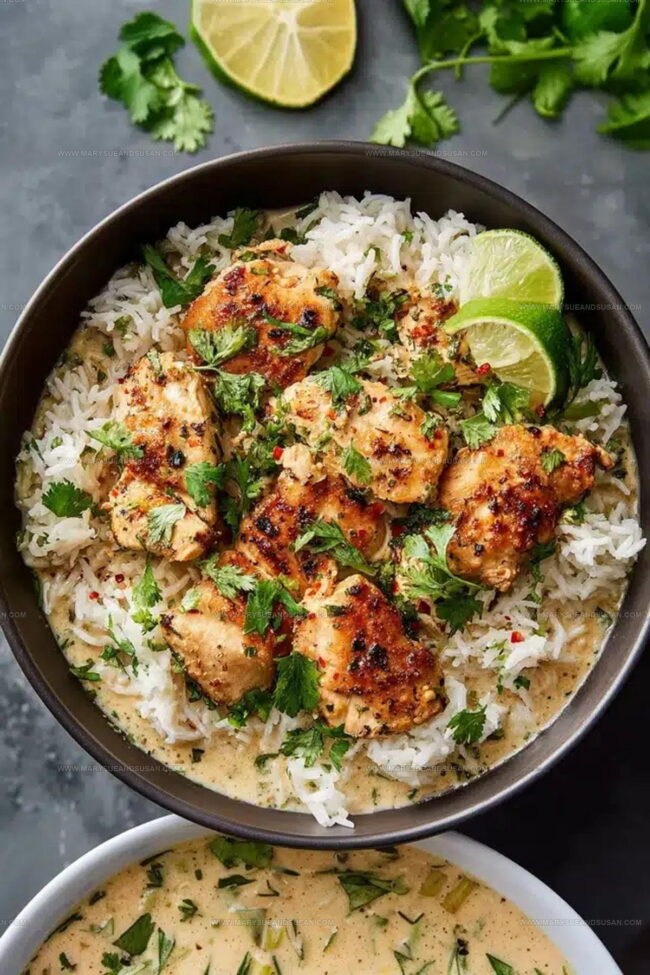 After cooking, let the dish rest for 5 minutes with the lid on. Fluff the rice gently with a fork. Garnish with chopped fresh cilantro or parsley and serve with lime wedges on the side. Each serving will be creamy, flavorful, and packed with aromatic spices.