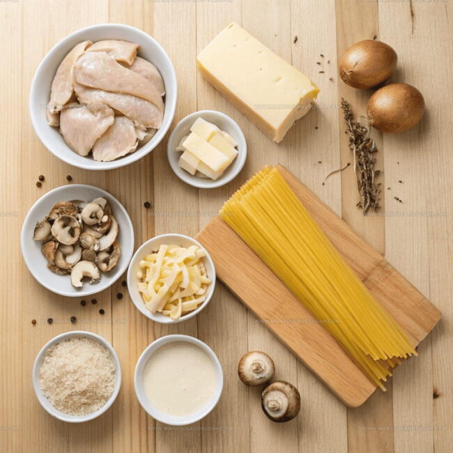 Pasta Base:Protein:Creamy Sauce Components:Cheese Blend:Seasonings:Garnish:Tools To Have Ready for Easy Chicken Tetrazzini