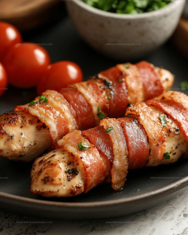 Succulent bacon wrapped chicken tenders promise a mouthwatering experience that satisfies serious comfort food cravings.
