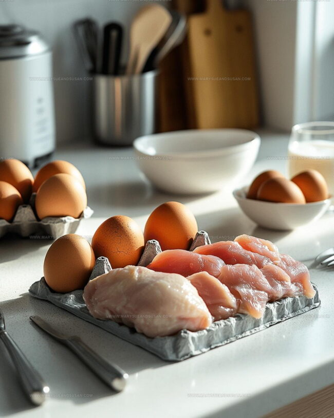 Egg Mixture:Coating Ingredients:Protein:Additional Items:Tools to Have Ready for Crispy Coconut Chicken Strips