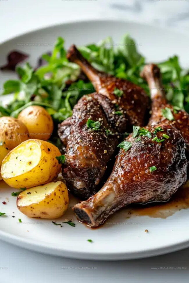 - Slow-cook the duck legs for exactly 3 hours, checking the pan every hour to ensure the fat remains at a consistent temperature and the legs are cooking evenly.