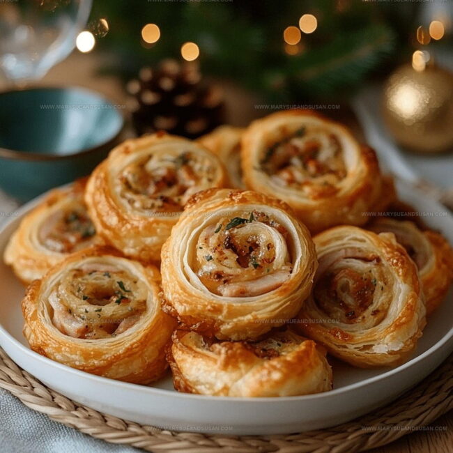 Recipe for Golden Ham and Cheese Puff Pastry Pinwheels