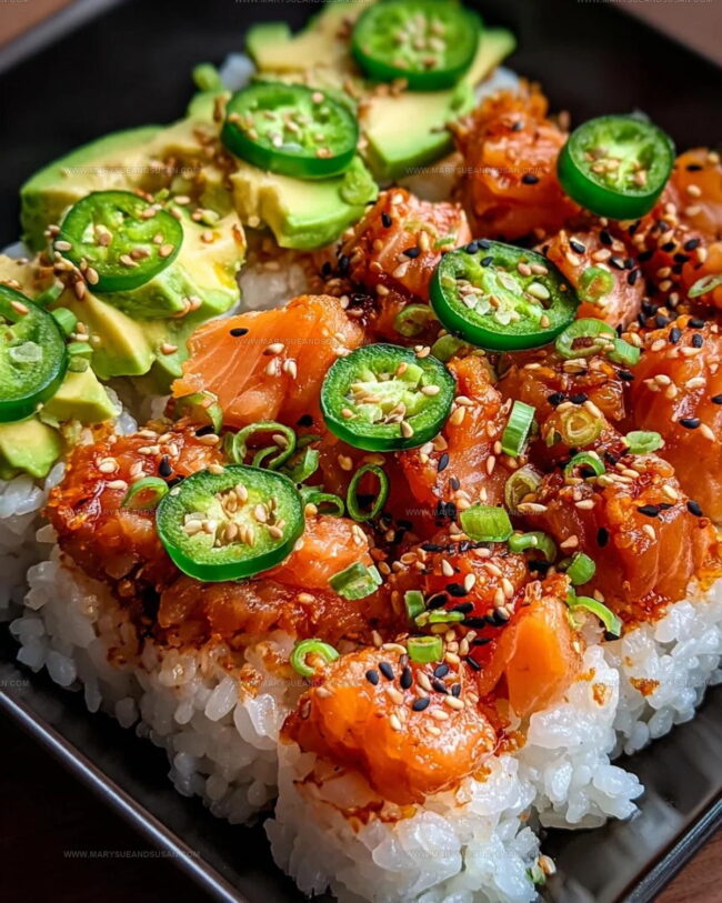 - If avoiding raw fish, swap salmon for cooked shrimp or smoked salmon, keeping the spicy mayo mixture for extra flavor.