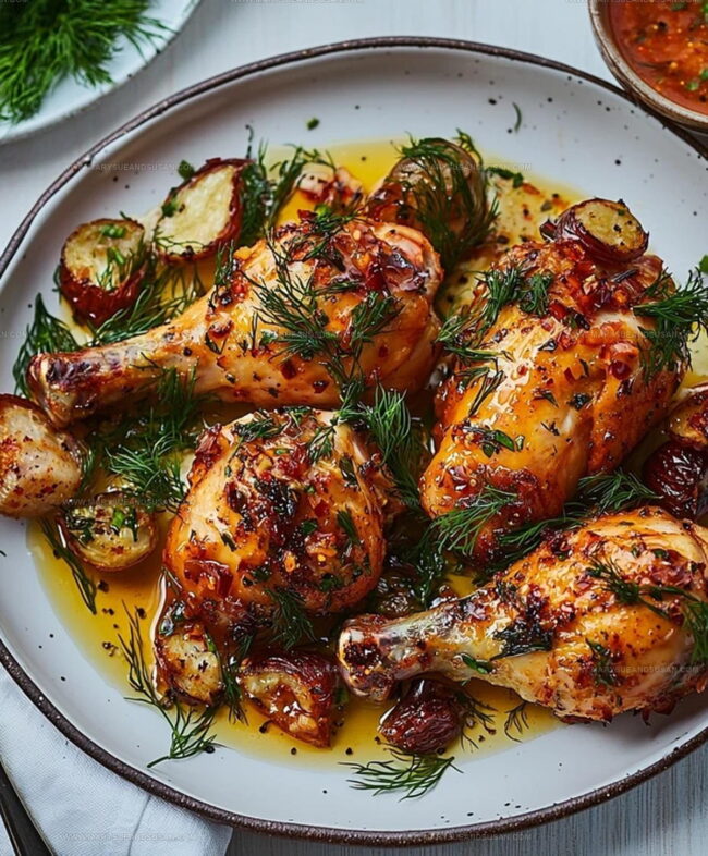 Once done, pull the chicken out and let it rest for 5-10 minutes. This helps the juices settle back into the meat. Transfer to a serving platter, scatter some fresh dill sprigs on top, and drizzle with those amazing pan juices.