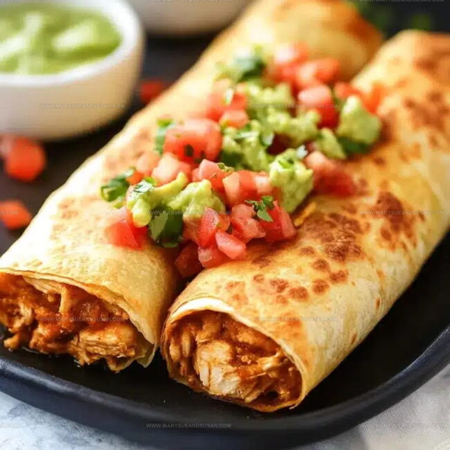 Crunchy chicken chimichangas deliver that satisfying golden exterior everyone craves at their favorite Mexican restaurant, now ready to enjoy right at home.