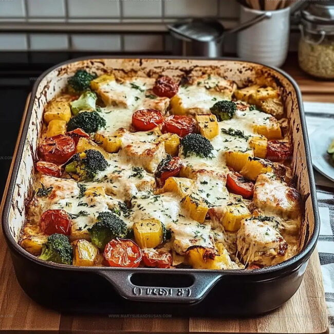 Cover the baking dish with foil if vegetables look like they’re browning too quickly. This prevents burning while keeping chicken and vegetables tender.