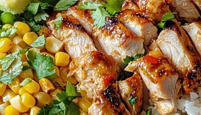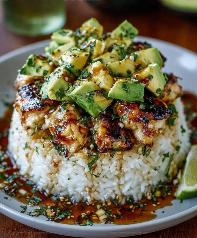 Honey lime chicken and avocado rice stack offers a fresh, balanced meal that feels both light and satisfying.