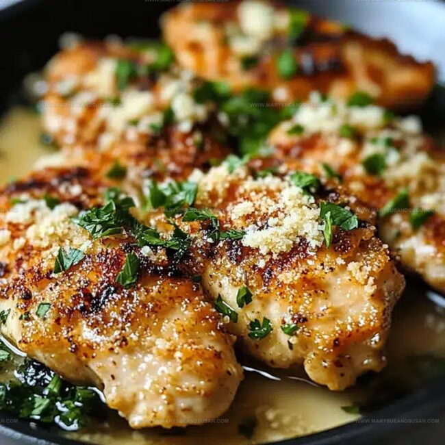 Transfer the chicken to a serving platter. Drizzle with extra garlic Parmesan sauce. Sprinkle with additional Parmesan cheese and chopped parsley for a final touch of flavor.