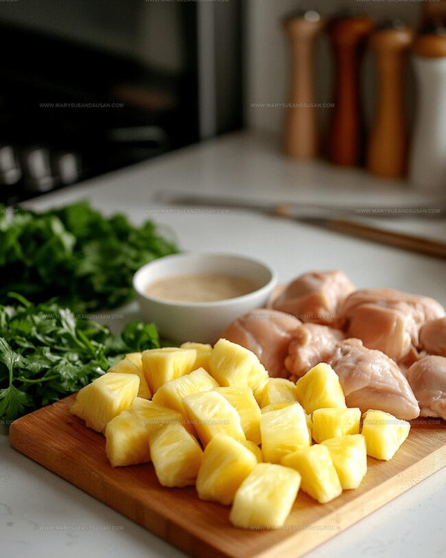 Marinade Ingredients:Protein and Fruit Ingredients:Everyday Kitchen Equipment for Grilled Chicken Pineapple Skewers