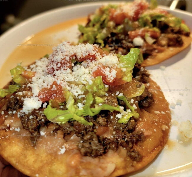 Ground beef tostadas layer bold seasoning over crispy shells topped with fresh garnishes. Each bite delivers crunch, flavor, and satisfying texture.