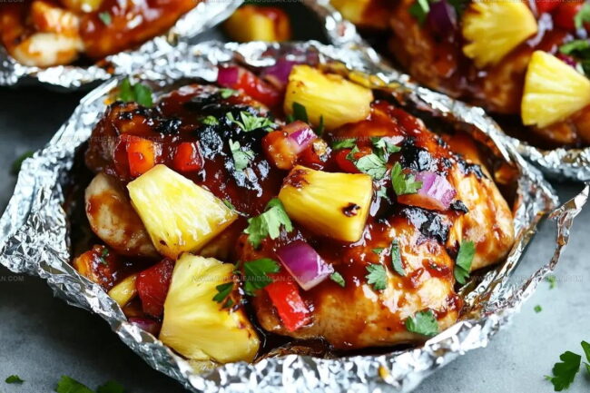 Hawaiian BBQ Chicken And Pineapple Foil Packets Recipe