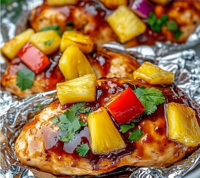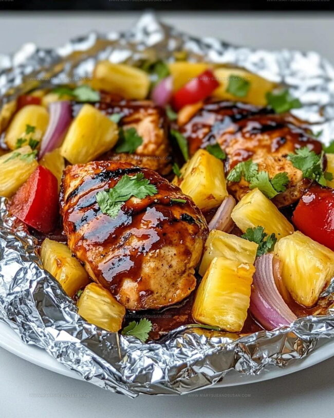 Hawaiian BBQ Chicken Pineapple Foil Packets combine sweet tropical flavors with smoky barbecue for a meal that feels like vacation on a plate.