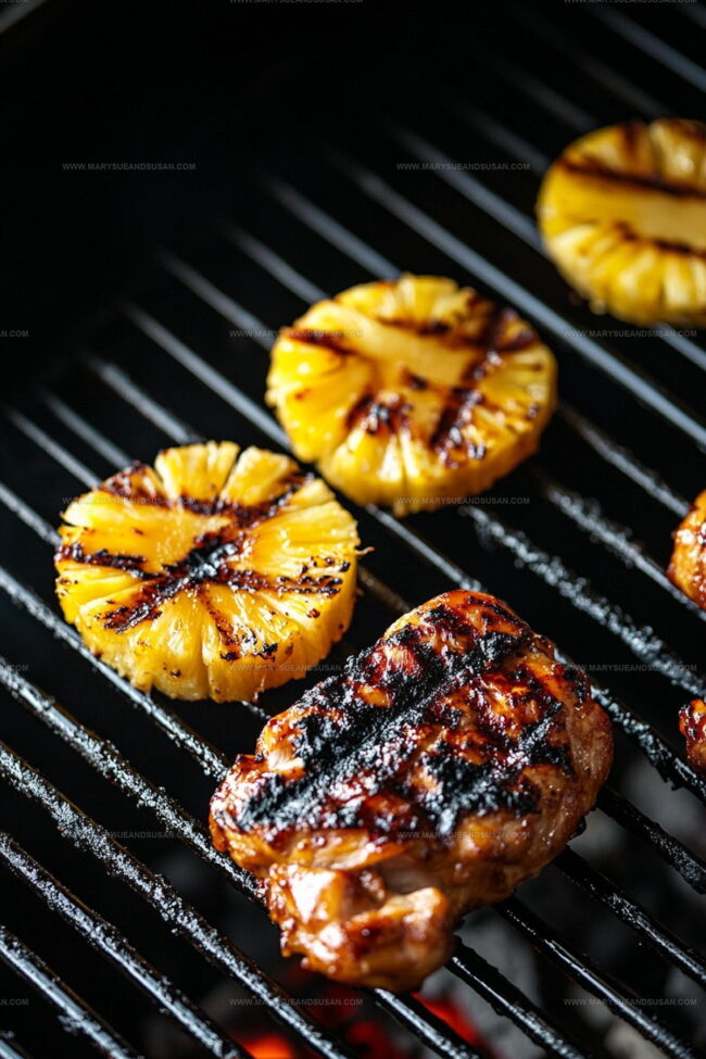 - Grill fresh pineapple slices until they develop caramelized grill marks.