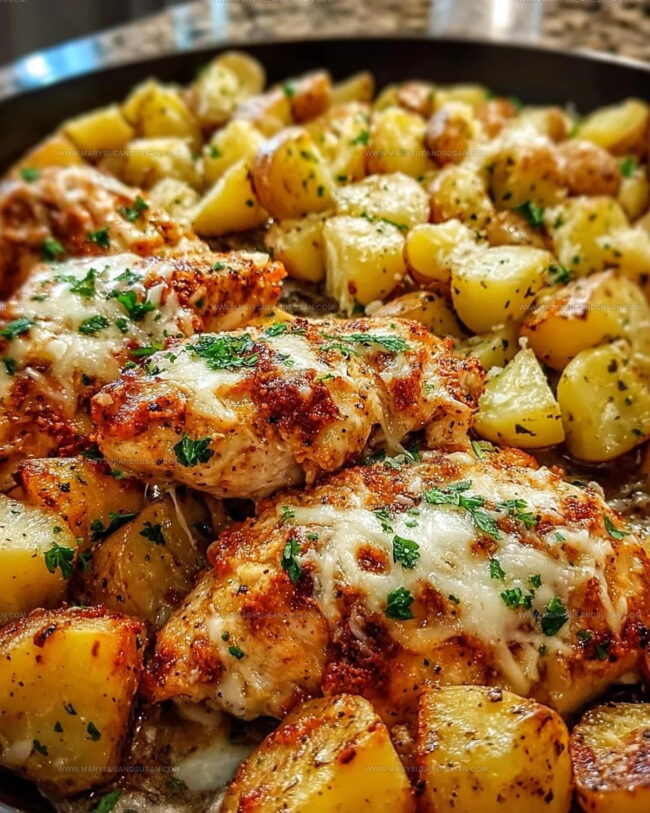 Garlic Parmesan Chicken and Potatoes delivers a comforting dinner that comes together faster than you can say “delicious.” Roast these golden, crispy chicken pieces with herb-coated potatoes for a simple meal that makes weeknight cooking feel like a breeze.
