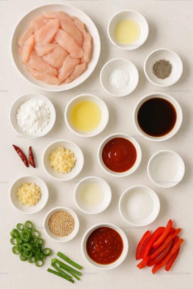 Slice 1 lb (454 g) boneless chicken breasts or thighs into thin pieces. In a mixing bowl, combine the chicken with these ingredients: