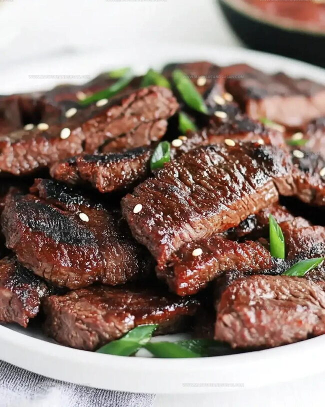 Take the beef off the grill and let it rest for a few minutes. This helps keep the juices locked in. Slice into bite-sized pieces if you want. Sprinkle with chopped green onions and a handful of sesame seeds before serving.