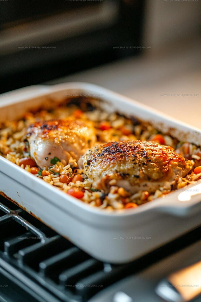 - Let the dish rest for 5 minutes after removing from the oven to allow flavors to settle and liquid to absorb.