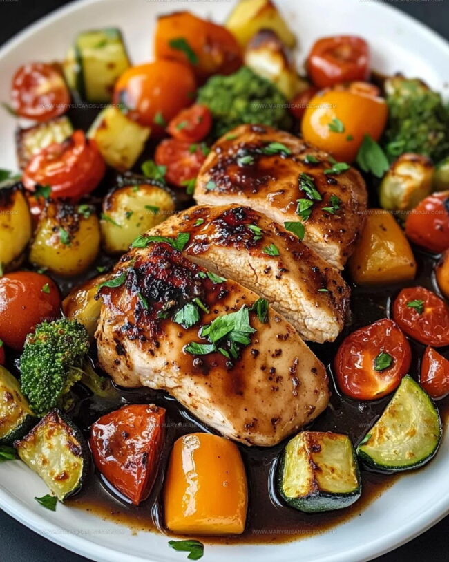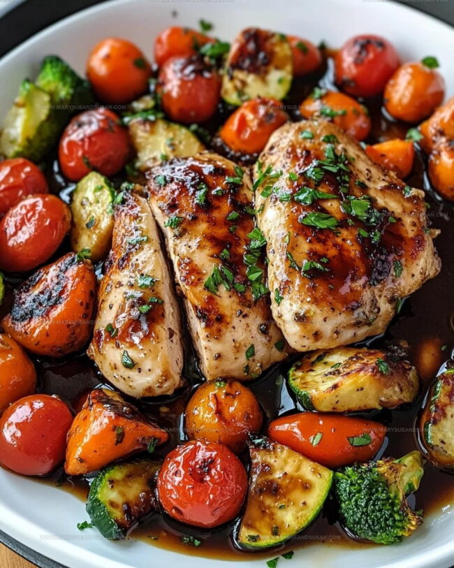 One Pan Balsamic Chicken and Veggies delivers bold flavor with barely any cleanup. Juicy chicken and roasted vegetables soak up tangy balsamic goodness.
