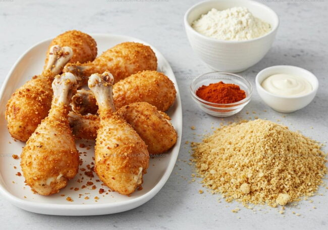 - Dredge each drumette in flour mixture, then dip in egg wash, and finally coat completely with breadcrumbs.
