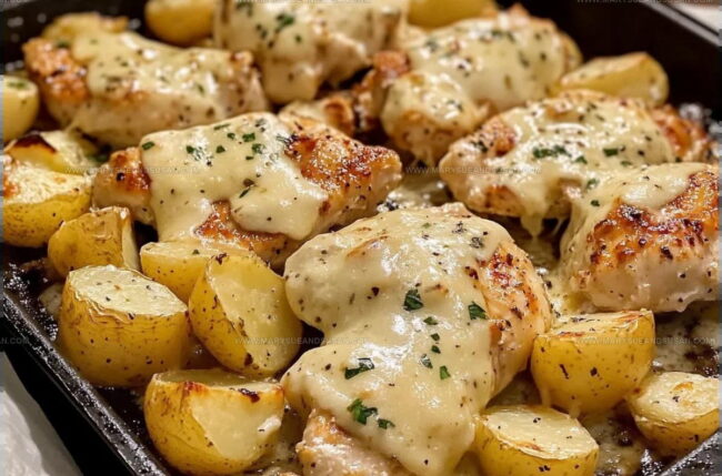 Garlic Parmesan Chicken and Potatoes brings together juicy chicken and crispy potatoes in one pan, making dinner a breeze for busy families. Cheesy, garlicky goodness awaits your taste buds with this simple weeknight meal that comes together in no time.