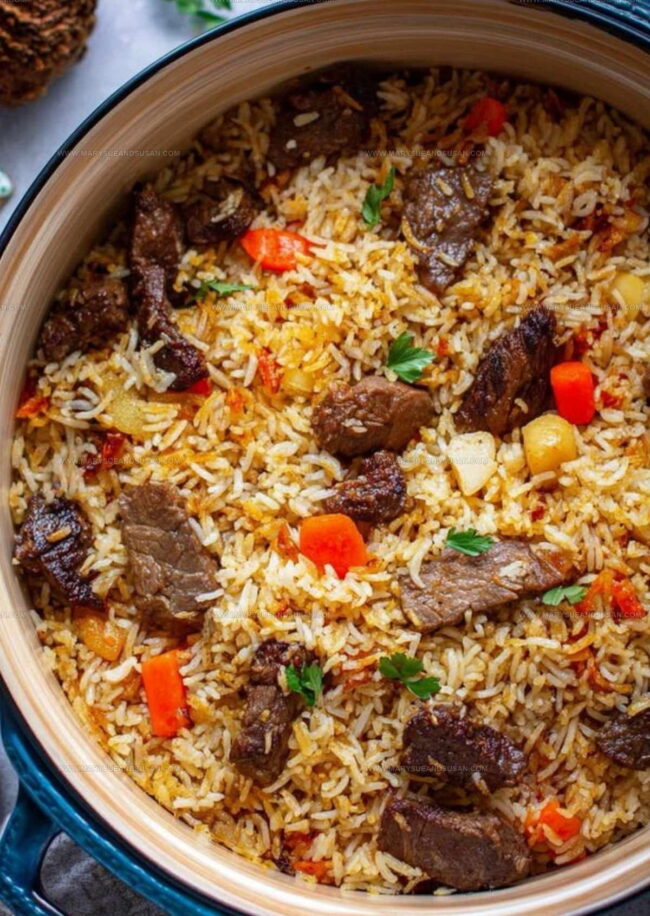Beef plov brings Central Asian comfort straight to your dinner table with tender meat and fragrant rice. Generations of home cooks have perfected this hearty Uzbek classic that warms your soul and satisfies your hunger.