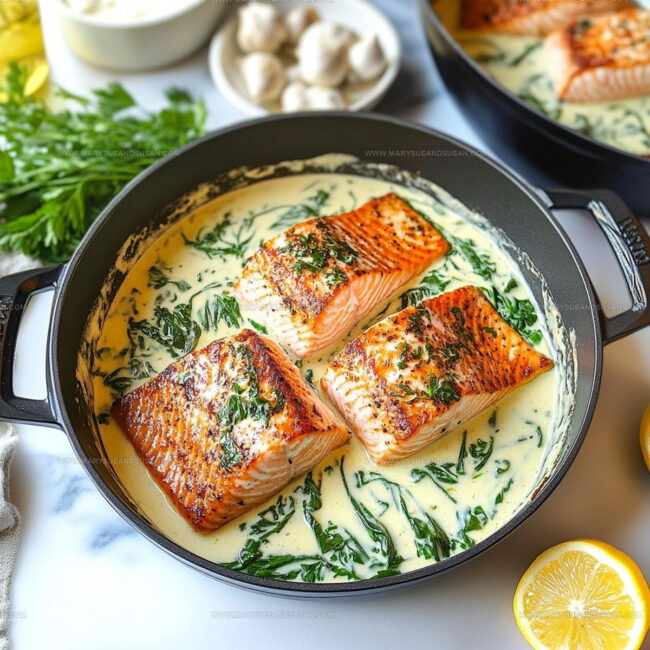 Salmon with Garlic Cream Sauce brings restaurant-quality dinner right to your kitchen table with minimal effort. Creamy, herby, and packed with flavor, this elegant dish comes together in less than 30 minutes for a quick weeknight meal that feels special.