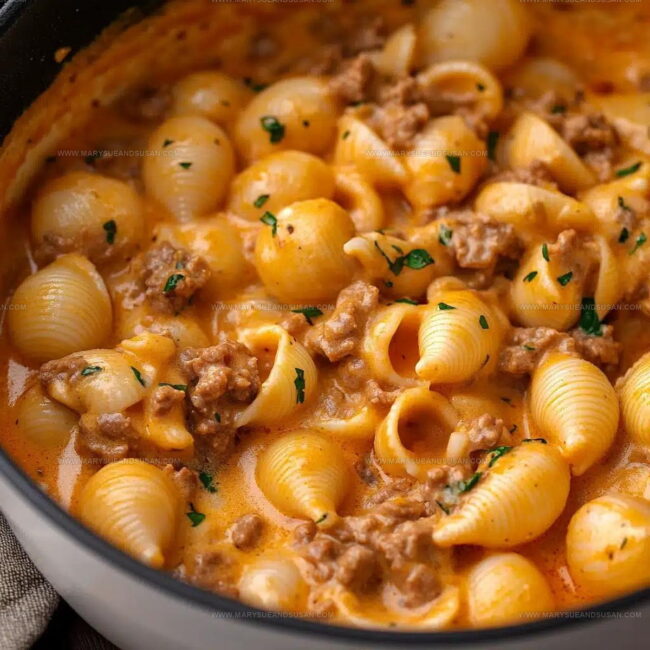 Creamy beef and shells will make your dinner table shine with pure comfort and deliciousness. This hearty pasta dish brings together ground beef, tender shells, and a rich cheese sauce that wraps around each bite like a warm hug.