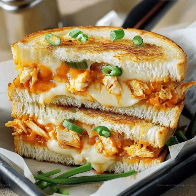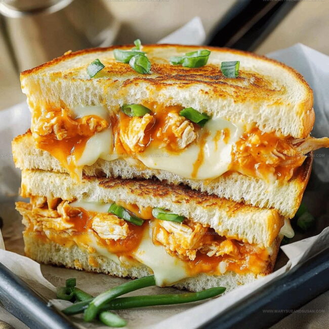 Juicy buffalo chicken grilled cheese sandwiches promise pure comfort on a plate.