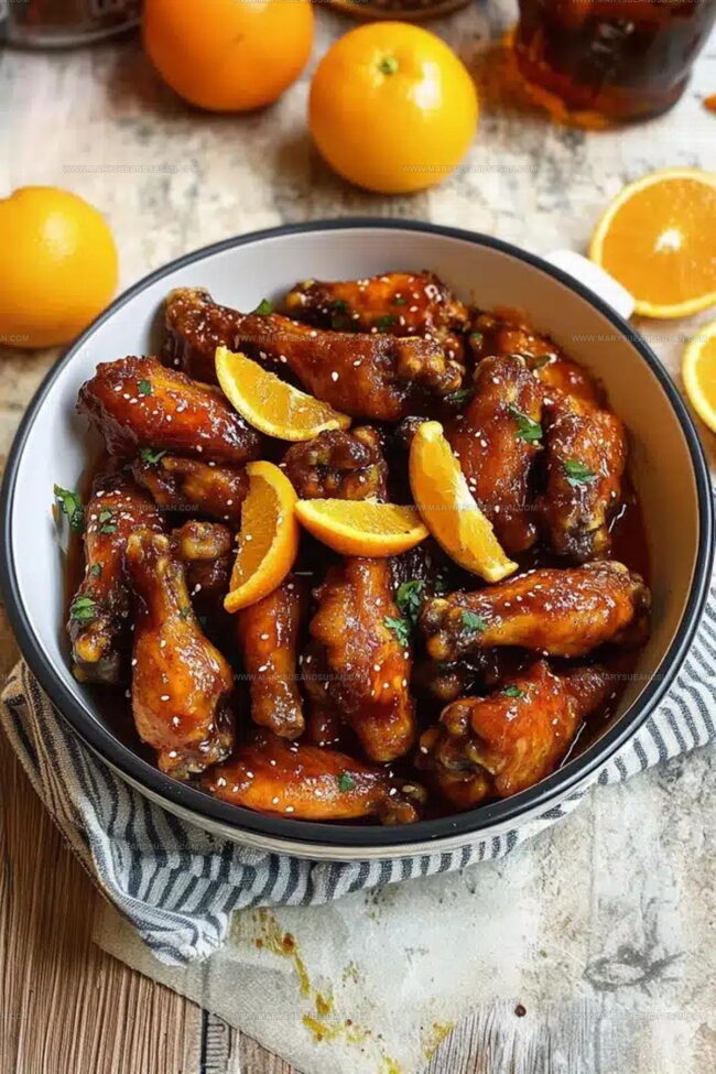 - Arrange the glazed wings on a serving plate. Add a sprinkle of fresh herbs or orange zest for extra flavor and visual appeal. Serve immediately while hot and sticky.