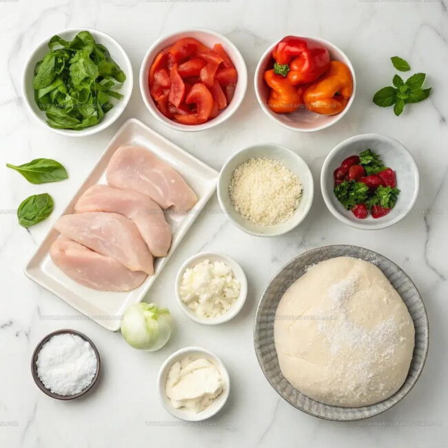 Dough Ingredients:Filling Ingredients:Topping Ingredients:Basic Cooking Tools for Chicken Calzone