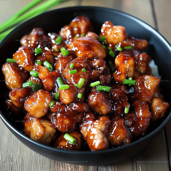 Slide the cooked chicken back into the skillet and swirl it around so each piece gets totally covered in that sticky, glossy sauce. Sprinkle some toasted sesame seeds and chopped green onions on top for a fresh kick. Serve while it’s hot and enjoy!