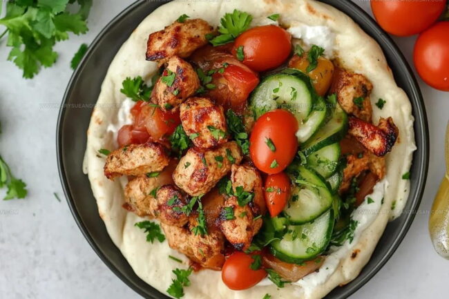 Create your perfect wrap by stuffing a warm pita with grilled chicken, sprinkle those fresh chopped veggies on top, and add a dollop of tzatziki sauce if you’re feeling extra delicious.