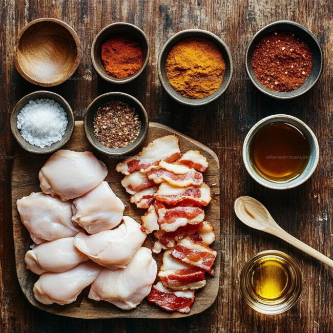 Main Protein:Seasoning Blend:Supporting Ingredients:Simple Kitchen Equipment for Sweet And Smoky Garlic Bacon Chicken