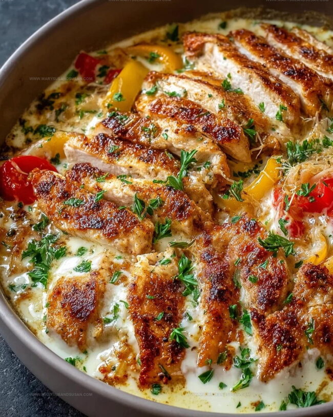 Return the cooked chicken to the skillet. Let it simmer in the creamy sauce for 2-3 minutes so the flavors mingle.
