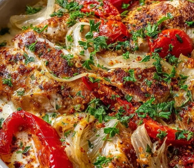 Sprinkle some fresh chopped parsley on top. Serve hot and enjoy your delicious Turkish-inspired chicken dish straight from the pan.